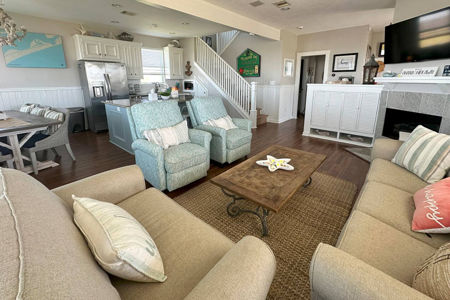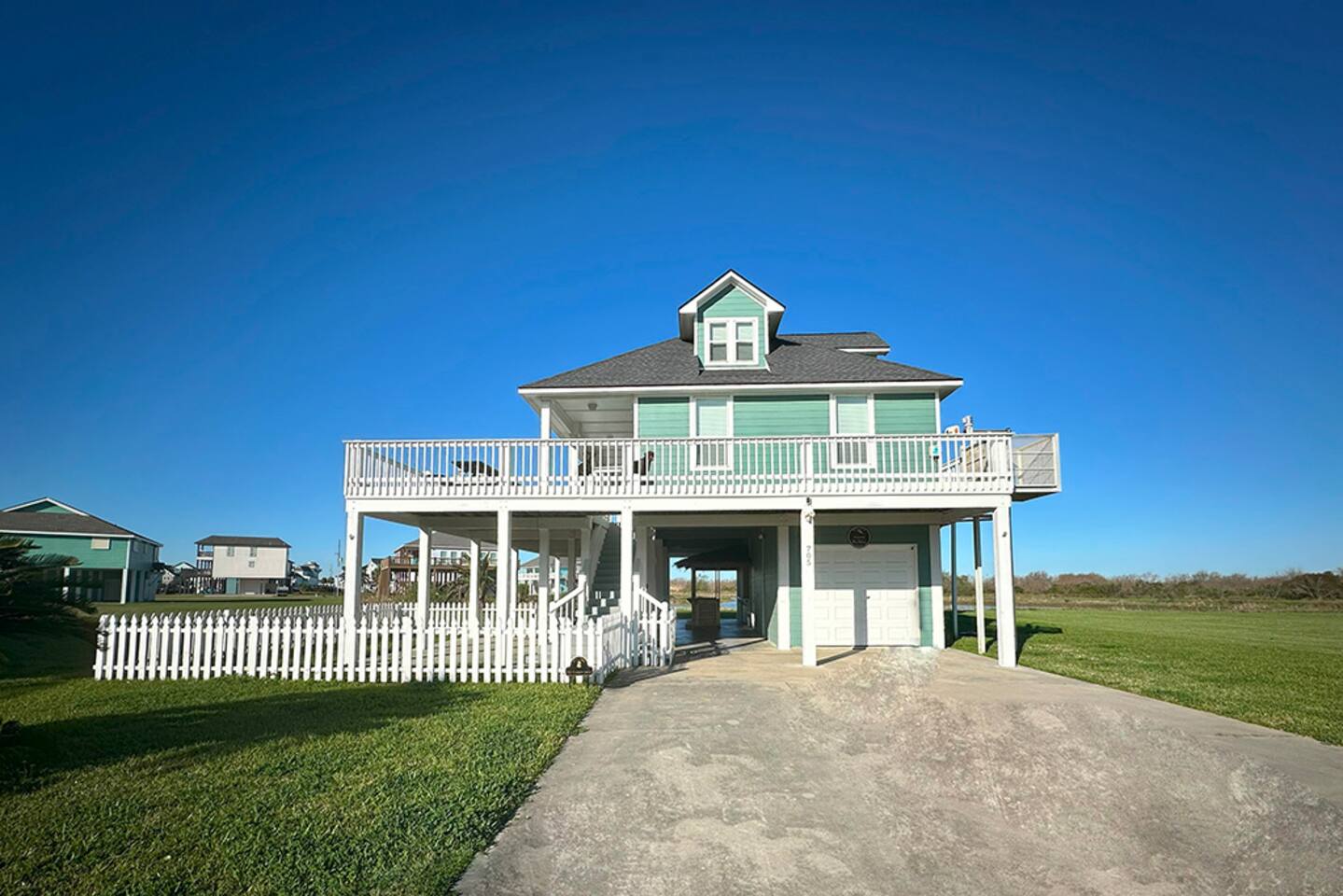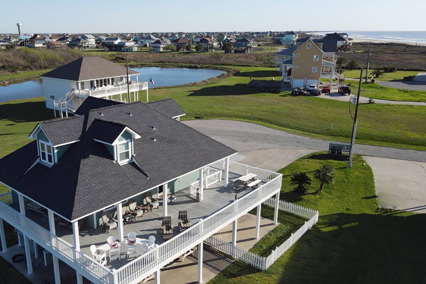 🏝️ Welcome to Ohana Hideaway — where the spirit of ohana (family) meets the laid-back charm of Crystal Beach. Tucked inside the exclusive Biscayne gated community, this luxury beach home blends private boardwalk Gulf access, pondside tranquility, and your own Tiki bar oasis into one unforgettable escape. Just minutes from the Galveston Ferry and surrounded by a 350-acre wildlife preserve, Ohana Hideaway is a retreat for beach lovers, nature watchers, and anyone who craves a slower pace. Wake up to the sound of seabirds, spend your days between sandy toes and pondside cocktails, and unwind as the sun melts into the horizon. 👨👩👦 Family vacations 🤝 Friend getaways 🐶 Trips with pets 🥂 Romantic coastal escapes WHY YOU'LL LOVE IT HERE Private boardwalk — skip the crowds and stroll straight to the beach in minutes. Outdoor Tiki bar with 65” Smart TV — happy hour is just steps from your door. Gulf & pond views from an expansive wraparound deck. Pet-friendly with fenced grassy yard, dog toys, and kennel. Beach gear included — paddle boards, chairs, umbrellas, boogie boards, and sandcastle kits. Games for all ages — cornhole, board games, and cozy movie nights in every bedroom. ☀️ THE SPACE Sleeps 12 | 4 Bedrooms + Pull-Out Sofa | 3 Bathrooms Pet-friendly with fenced yard, dog toys, and kennel Gulf and pond views from the wraparound deck 🛏️ BEDROOMS & BATHS 🛁 King Suite (Upstairs): King bed + twin daybed, ensuite bath, pond view, Smart TV Full Room (Upstairs): Two full beds, ensuite bath, Smart TV Queen Room (Downstairs): Queen bed, Smart TV Bunk Room (Downstairs): Two twin beds, Smart TV Extra: Pull-out queen sofa bed 📺 LIVING & DINING ☕ Open-concept living/dining/kitchen designed for group connection Fully equipped kitchen with coffee bar, blender, baking sheets, and grilling tools Dining table with nature views _______________________________________ 🍹 OUTDOOR LIVING Private Tiki Bar with 65” Smart TV – perfect for sunset cocktails or game day Expansive Deck with sun loungers, picnic tables, and shade + sun seating options Pondside Hammock for peaceful afternoon naps Outdoor Shower to rinse off sand Charcoal Grill for fresh catch dinners Beach Gear Included: Chairs, sandcastle kit, boogie boards, paddle boards _______________________________________ 🐾 PET FRIENDLY Bring your furry friends! With a grassy fenced yard, water bowls, and toys, your pups can relax as much as you do. Pet fee: $150 per stay. _______________________________________ 🌊 LOCATION & ACCESS Private Boardwalk to the beach (pedestrian, golf cart, or vehicle access nearby) Steps from the Gulf – or drive directly onto the sand one street over Minutes from the Galveston Ferry & local dining Surrounded by wildlife for birdwatching and peaceful mornings _______________________________________ 🏡 GUEST ACCESS You’ll have the entire home, fenced yard, and all amenities to yourself. Self check-in via lockbox. _______________________________________ 💬 WHY GUESTS LOVE IT “Better than the pictures – huge, spotless, and perfectly stocked” “Tiki bar was our nightly hangout spot” “Loved the quiet pond views after the beach” _______________________________________ 📅 YOUR OHANA AWAITS! Book your coastal escape today – sunrise coffee on the deck, sunset cocktails at the tiki bar, and memories made in between.