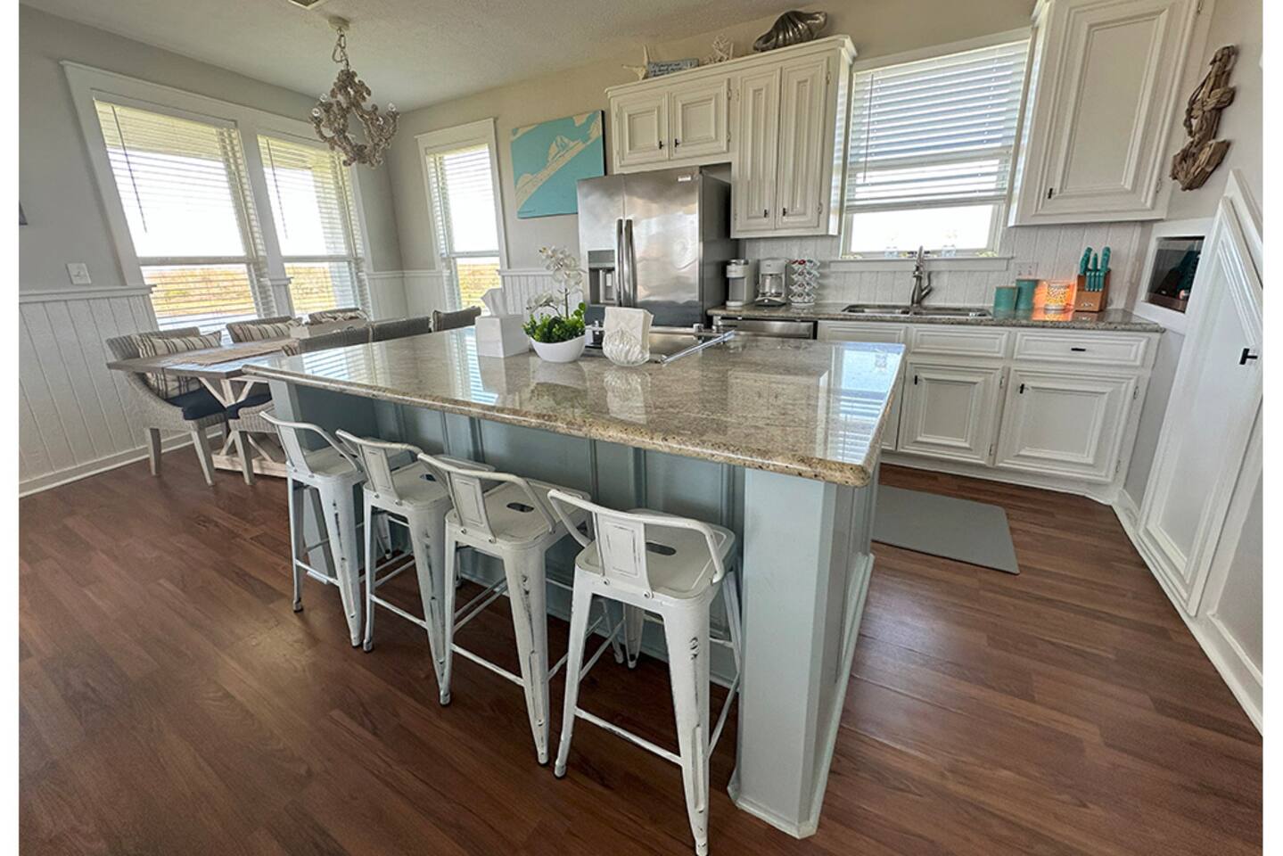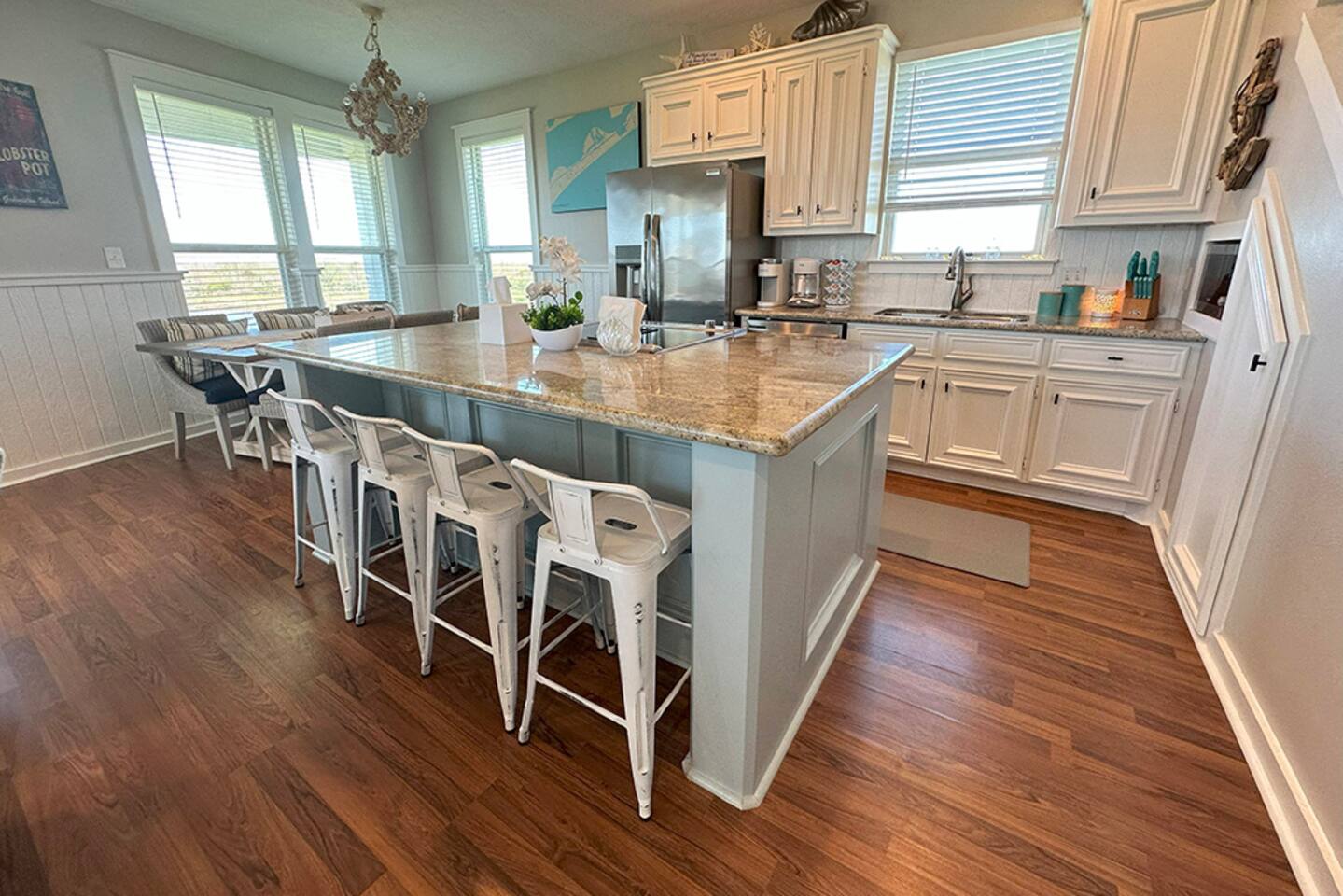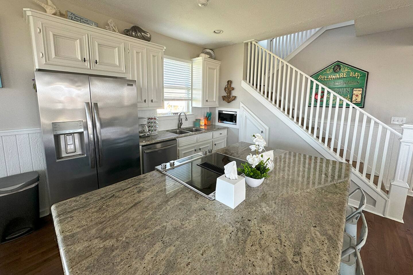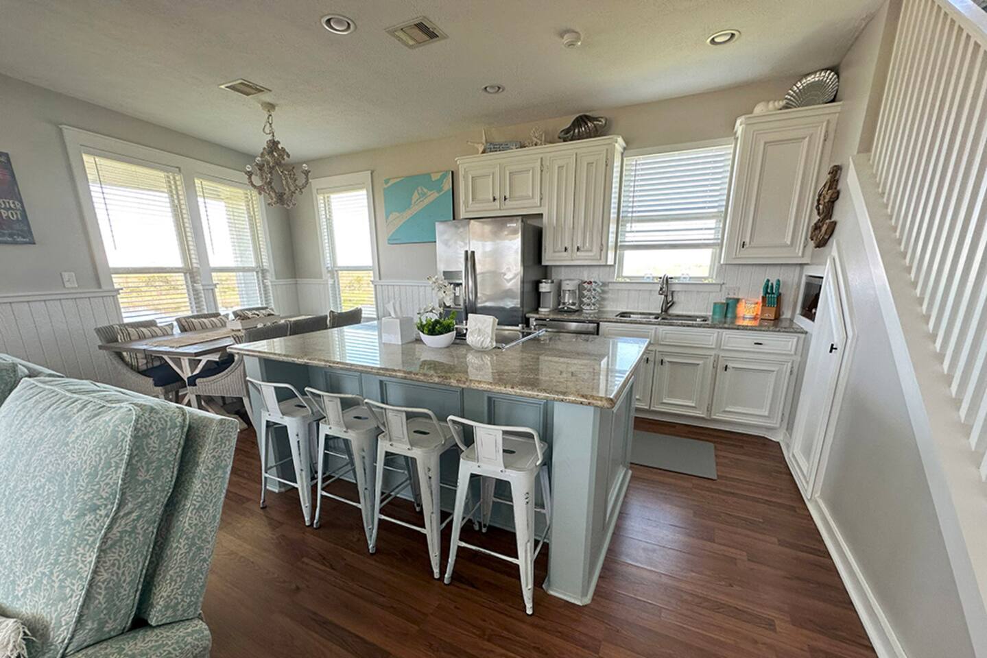 🏝️ Welcome to Ohana Hideaway — where the spirit of ohana (family) meets the laid-back charm of Crystal Beach. Tucked inside the exclusive Biscayne gated community, this luxury beach home blends private boardwalk Gulf access, pondside tranquility, and your own Tiki bar oasis into one unforgettable escape. Just minutes from the Galveston Ferry and surrounded by a 350-acre wildlife preserve, Ohana Hideaway is a retreat for beach lovers, nature watchers, and anyone who craves a slower pace. Wake up to the sound of seabirds, spend your days between sandy toes and pondside cocktails, and unwind as the sun melts into the horizon. 👨👩👦 Family vacations 🤝 Friend getaways 🐶 Trips with pets 🥂 Romantic coastal escapes WHY YOU'LL LOVE IT HERE Private boardwalk — skip the crowds and stroll straight to the beach in minutes. Outdoor Tiki bar with 65” Smart TV — happy hour is just steps from your door. Gulf & pond views from an expansive wraparound deck. Pet-friendly with fenced grassy yard, dog toys, and kennel. Beach gear included — paddle boards, chairs, umbrellas, boogie boards, and sandcastle kits. Games for all ages — cornhole, board games, and cozy movie nights in every bedroom. ☀️ THE SPACE Sleeps 12 | 4 Bedrooms + Pull-Out Sofa | 3 Bathrooms Pet-friendly with fenced yard, dog toys, and kennel Gulf and pond views from the wraparound deck 🛏️ BEDROOMS & BATHS 🛁 King Suite (Upstairs): King bed + twin daybed, ensuite bath, pond view, Smart TV Full Room (Upstairs): Two full beds, ensuite bath, Smart TV Queen Room (Downstairs): Queen bed, Smart TV Bunk Room (Downstairs): Two twin beds, Smart TV Extra: Pull-out queen sofa bed 📺 LIVING & DINING ☕ Open-concept living/dining/kitchen designed for group connection Fully equipped kitchen with coffee bar, blender, baking sheets, and grilling tools Dining table with nature views _______________________________________ 🍹 OUTDOOR LIVING Private Tiki Bar with 65” Smart TV – perfect for sunset cocktails or game day Expansive Deck with sun loungers, picnic tables, and shade + sun seating options Pondside Hammock for peaceful afternoon naps Outdoor Shower to rinse off sand Charcoal Grill for fresh catch dinners Beach Gear Included: Chairs, sandcastle kit, boogie boards, paddle boards _______________________________________ 🐾 PET FRIENDLY Bring your furry friends! With a grassy fenced yard, water bowls, and toys, your pups can relax as much as you do. Pet fee: $150 per stay. _______________________________________ 🌊 LOCATION & ACCESS Private Boardwalk to the beach (pedestrian, golf cart, or vehicle access nearby) Steps from the Gulf – or drive directly onto the sand one street over Minutes from the Galveston Ferry & local dining Surrounded by wildlife for birdwatching and peaceful mornings _______________________________________ 🏡 GUEST ACCESS You’ll have the entire home, fenced yard, and all amenities to yourself. Self check-in via lockbox. _______________________________________ 💬 WHY GUESTS LOVE IT “Better than the pictures – huge, spotless, and perfectly stocked” “Tiki bar was our nightly hangout spot” “Loved the quiet pond views after the beach” _______________________________________ 📅 YOUR OHANA AWAITS! Book your coastal escape today – sunrise coffee on the deck, sunset cocktails at the tiki bar, and memories made in between.